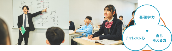 では、NSGにおける中学生への指導は、何を目的として実践しているのか。それは、「入試や日々の学習を題材に21世紀を力強く生き抜いていける人間の育成をめざす」ということになります。中学生という多感な時期に、子どもたちは様々な困難にぶつかります。勉強のこと、部活動のこと、あるいは友人関係など。子どもたちが、そんな困難という壁にぶつかったとき、すぐあきらめたり、投げ出したりするのではなく、悩み、苦しみ、考え、そして乗り越えてほしいとNSGは思っています。でも、高い壁を乗り越えるためには、工夫や努力が必要です。「今の自分の状況はどうなんだろう?どうすれば解決できるんだろう?」などいろいろ考えるはずです。これは、むずかしい数学の問題にぶつかったときに似ています。中学生が、毎日頭を悩ませている英語や数学を解決すること。それは様々な困難を克服することと同じことです。